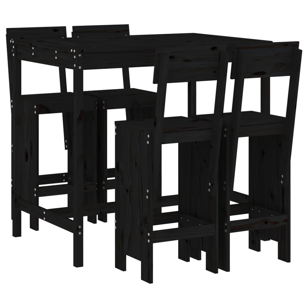vidaXL 5-dijelni vrtni barski set crni od masivne borovine