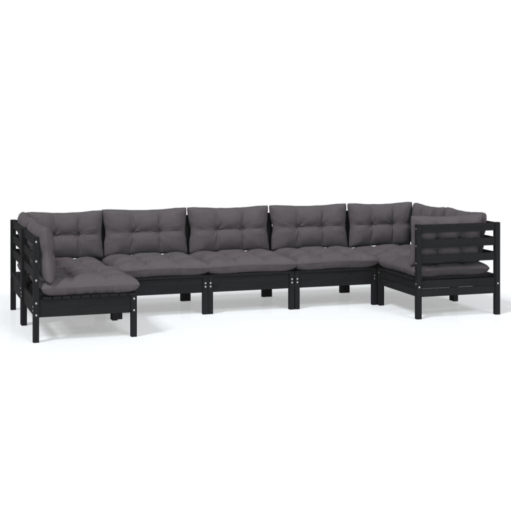 vidaXL 7-dijelna vrtna garnitura od borovine s jastucima crna