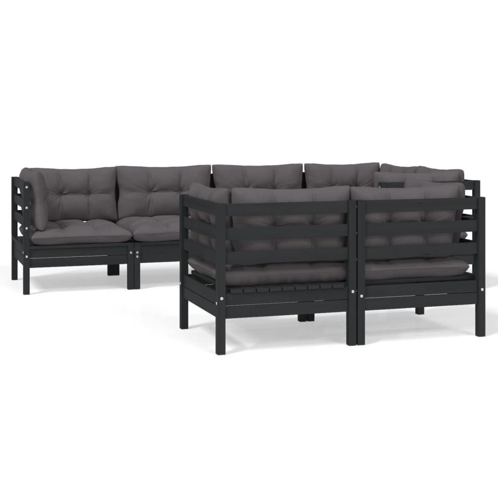 vidaXL 7-dijelna vrtna garnitura od masivne borovine s jastucima crna