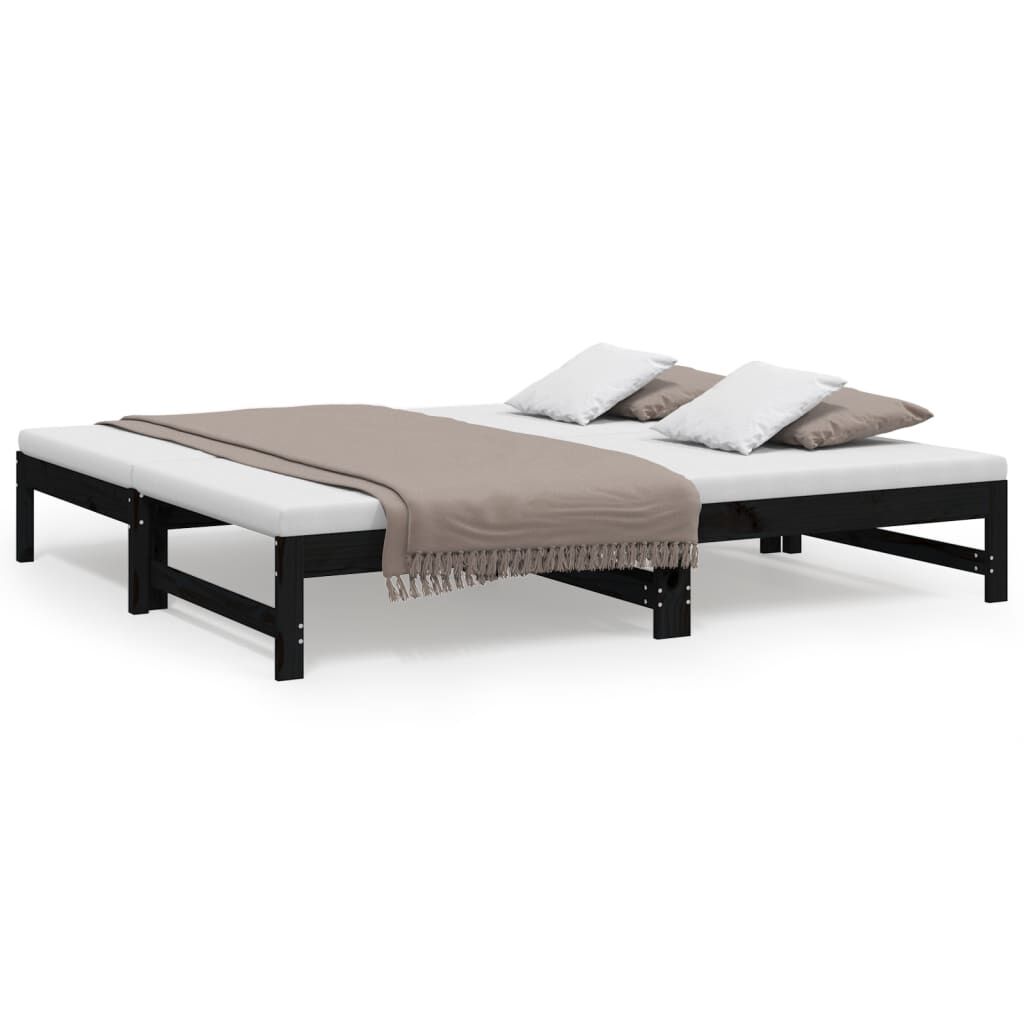 vidaXL Dnevni ležaj na izvlačenje crni 2x(90x190) cm masivna borovina