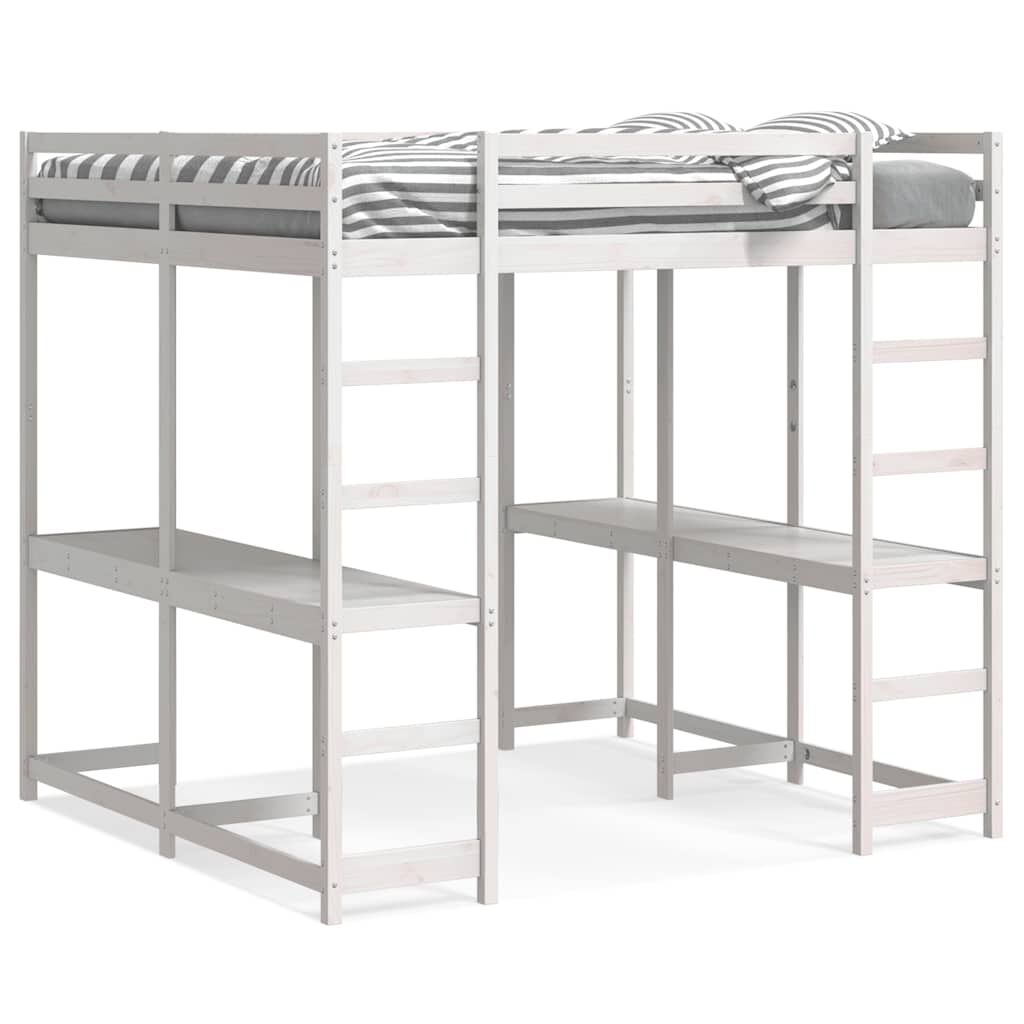 vidaXL Krevet na kat sa stolom i ljestvama bijeli 180x200 cm borovina