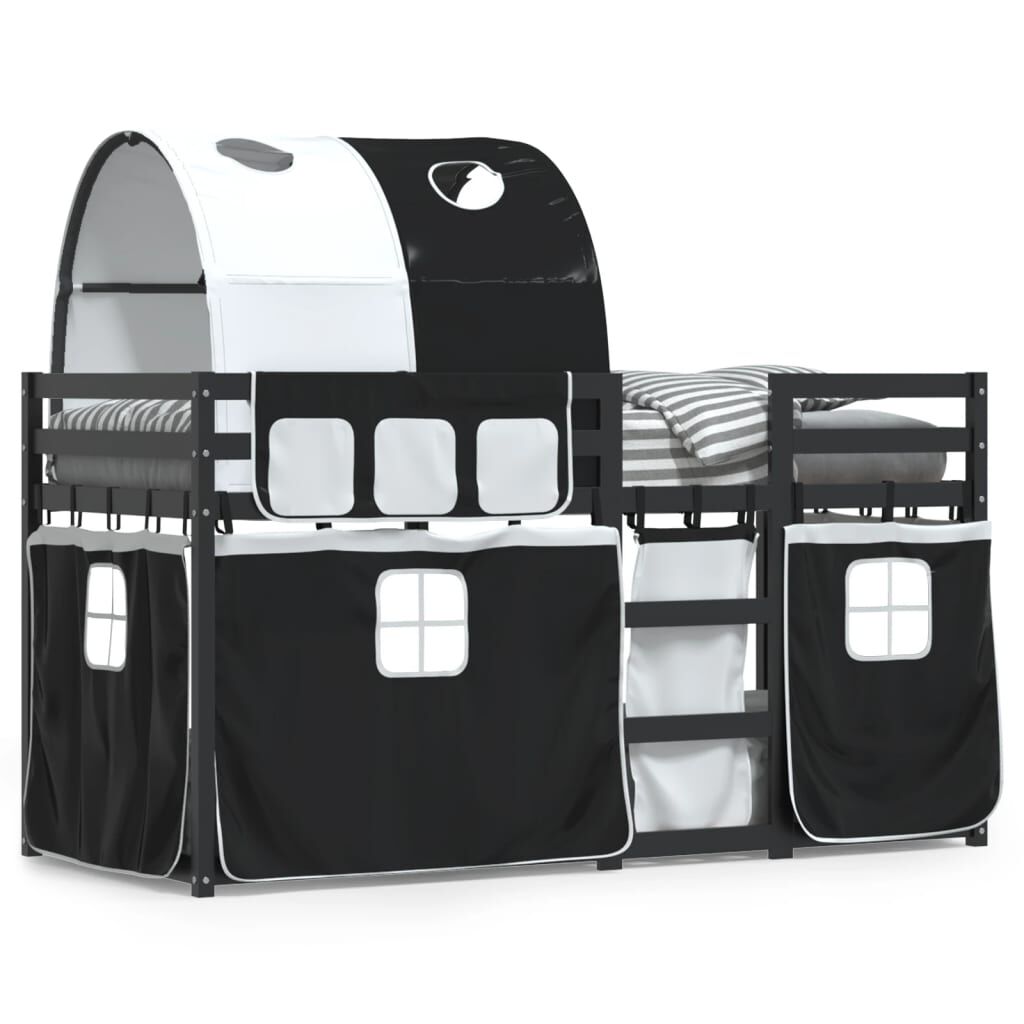 vidaXL Krevet na kat sa zavjesama bijelo-crni 90 x 200 cm od borovine