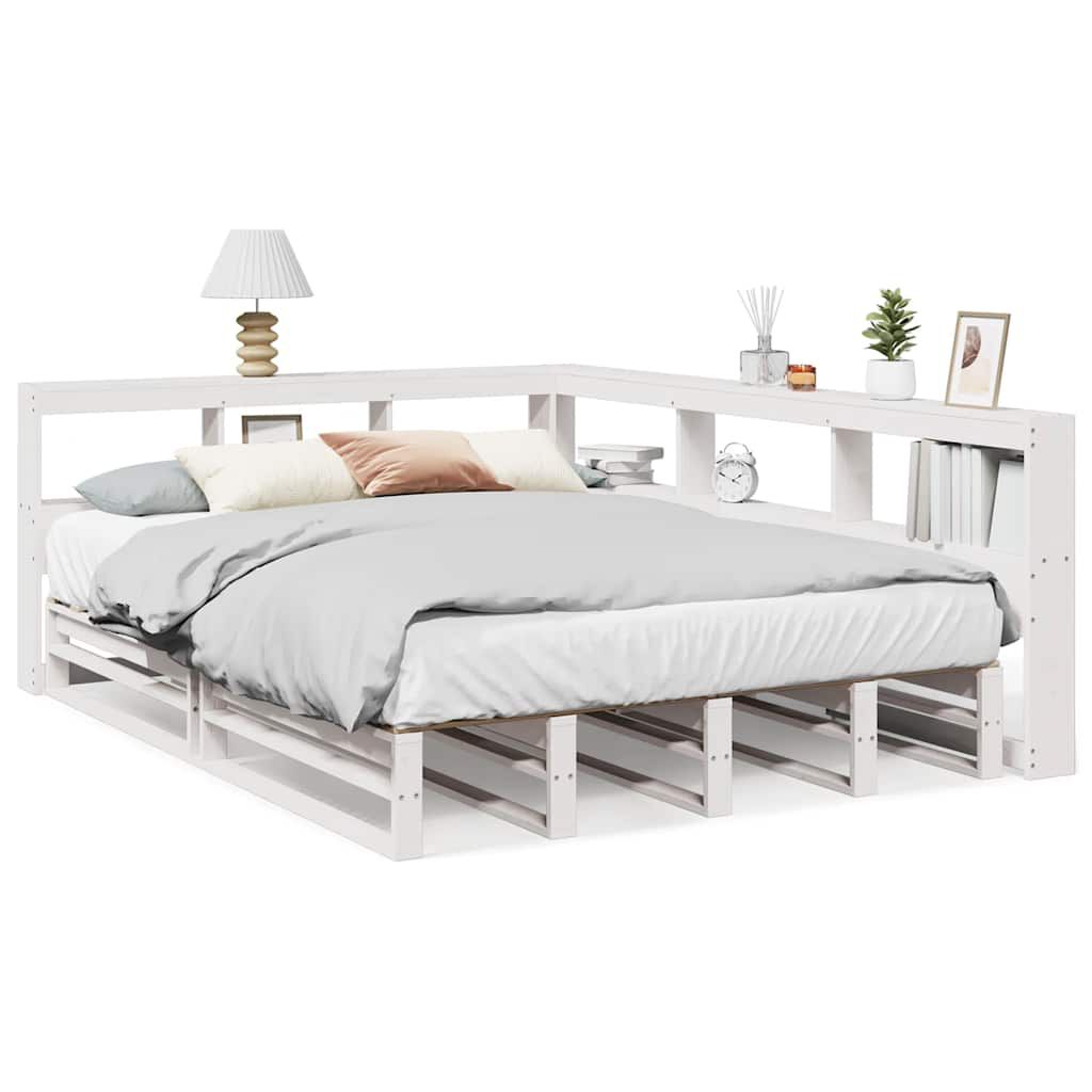 vidaXL Krevet s regalom z knjige bez madraca bijeli 160x200cm borovina