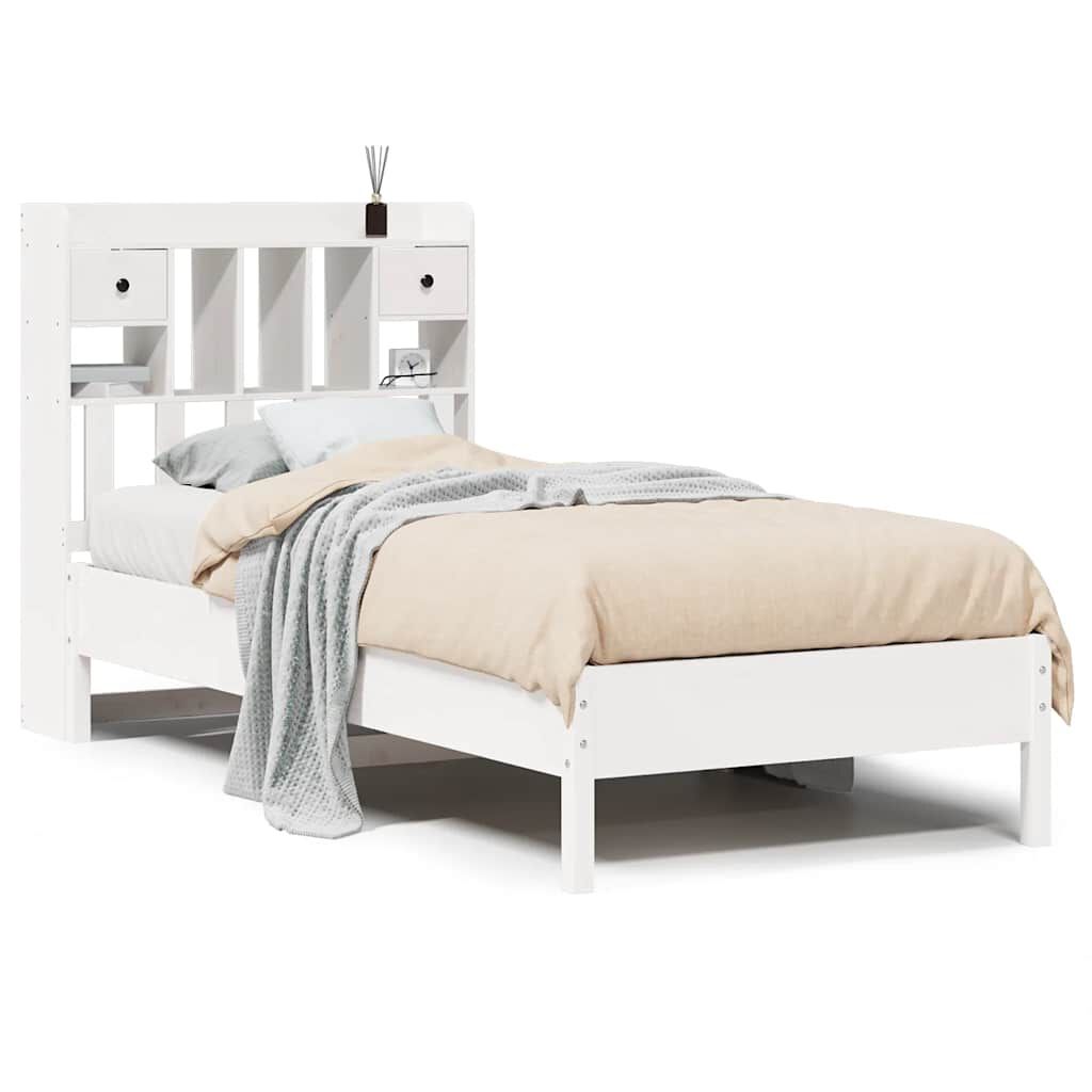 vidaXL Krevet s regalom za knjige bez madraca bijeli 75x190cm borovina