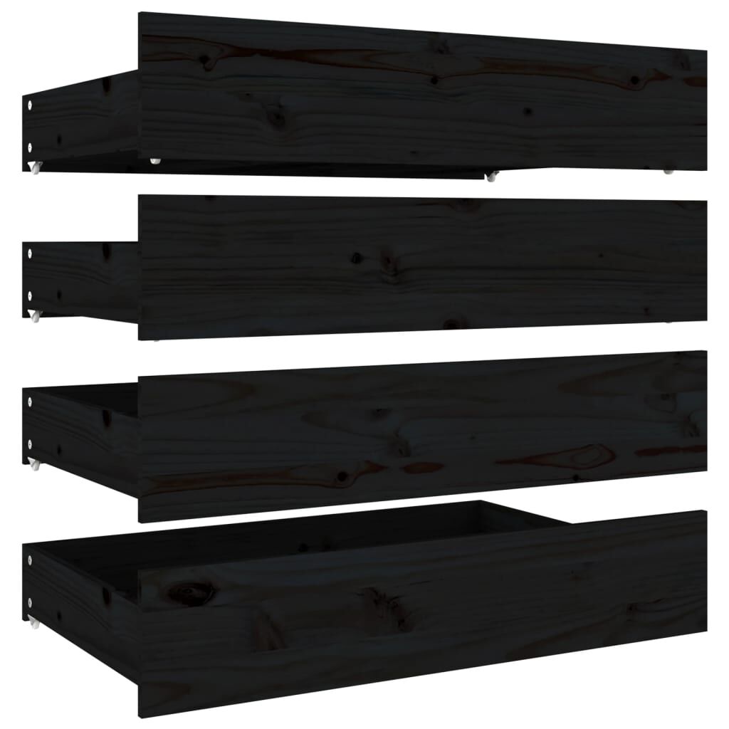 vidaXL Ladice za krevet 4 kom crne od masivne borovine