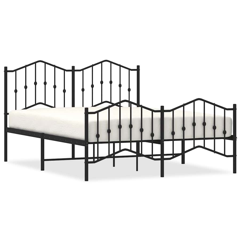 vidaXL Metalni okvir kreveta s uzglavljem i podnožjem crni 135x190 cm