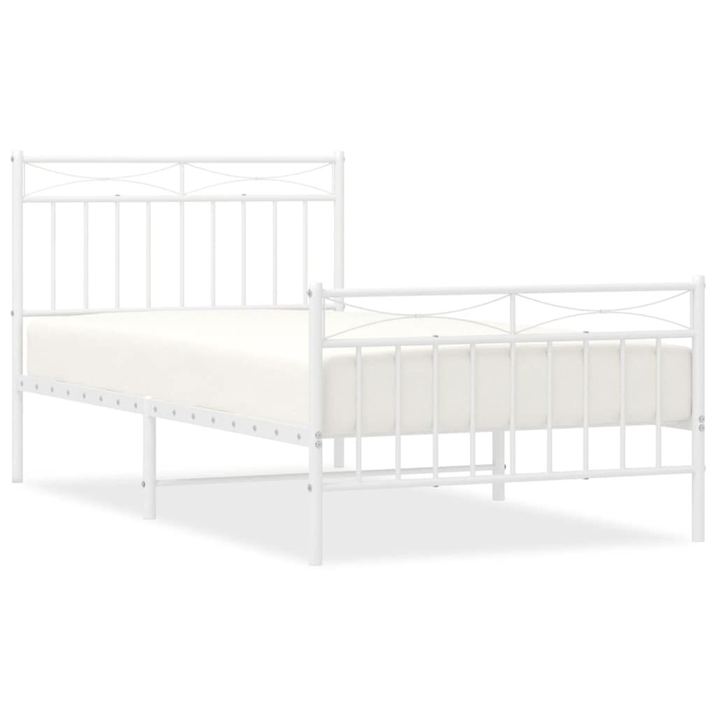 vidaXL Metalni okvir kreveta uzglavlje i podnožje bijeli 100x190 cm