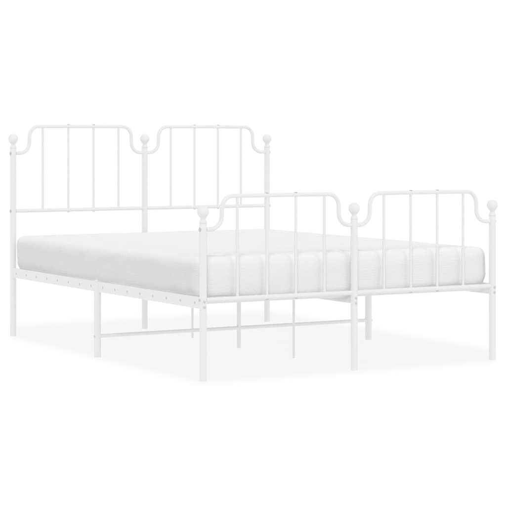 vidaXL Metalni okvir kreveta uzglavlje i podnožje bijeli 135 x 190 cm
