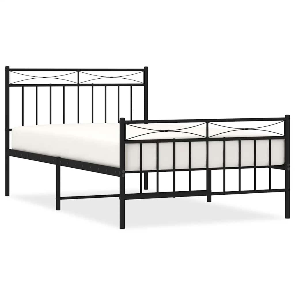 vidaXL Metalni okvir kreveta uzglavlje i podnožje crni 100x200 cm