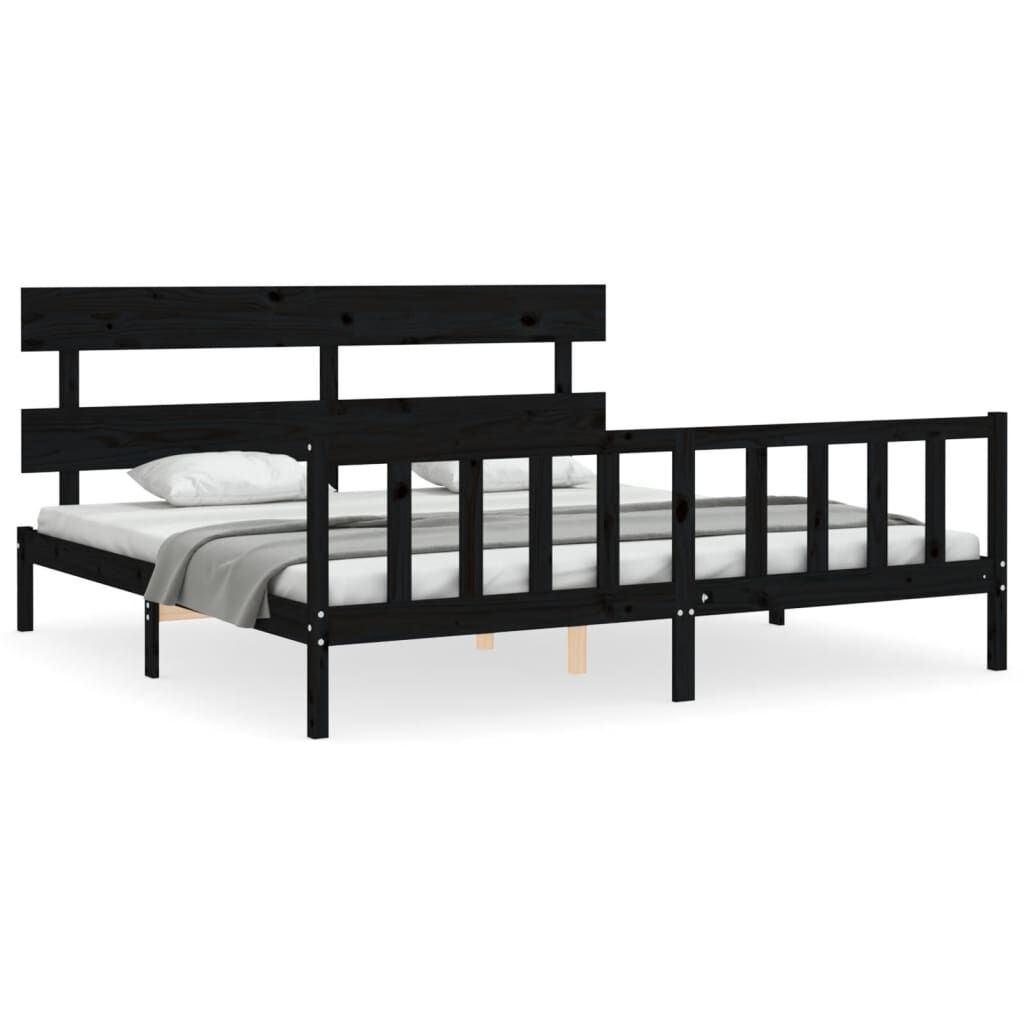 vidaXL Okvir kreveta s uzglavljem crni veliki bračni od masivnog drva