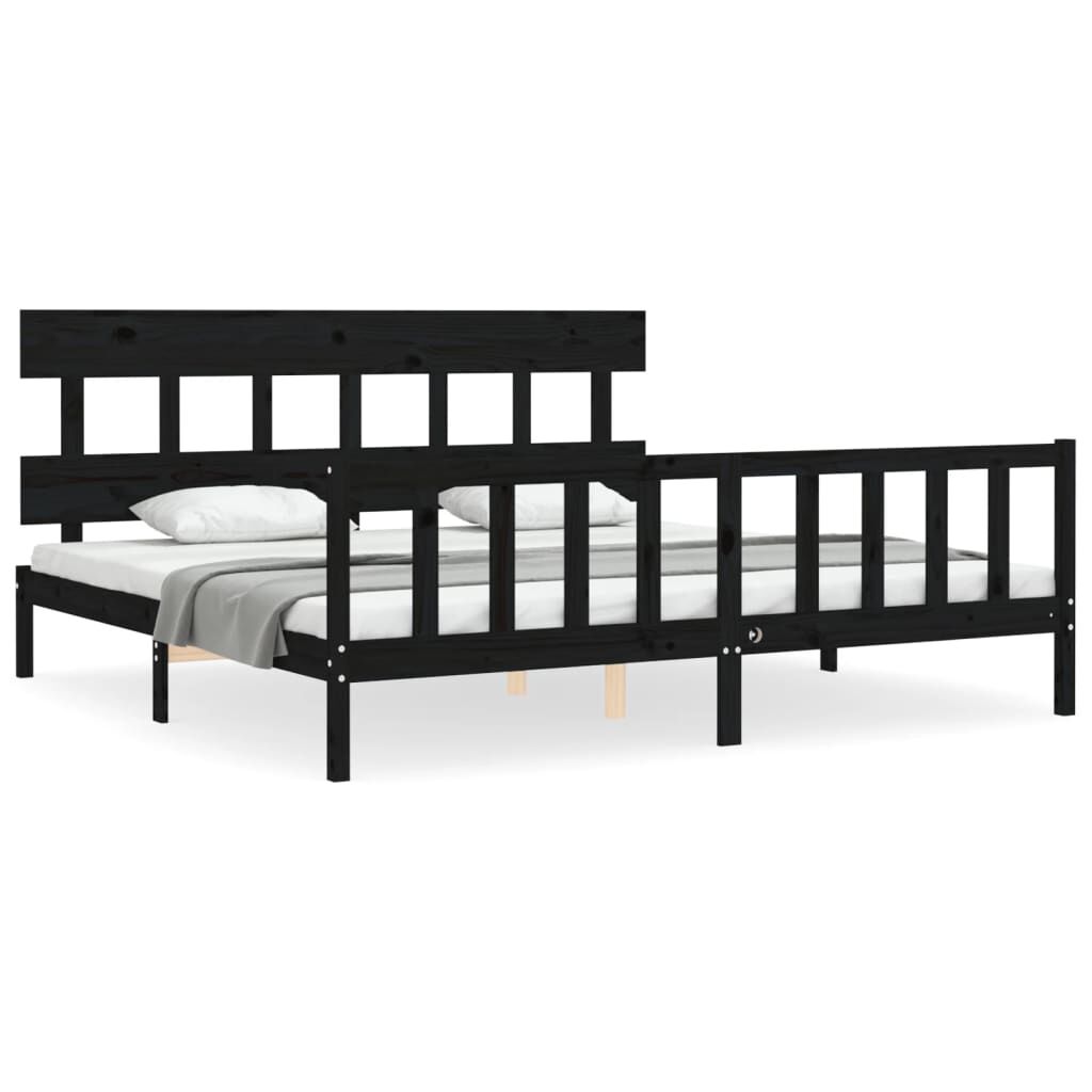 vidaXL Okvir kreveta s uzglavljem crni veliki bračni od masivnog drva