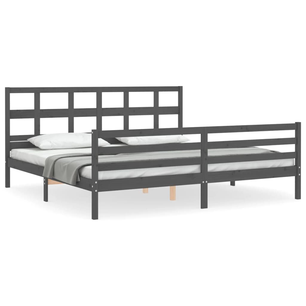 vidaXL Okvir za krevet s uzglavljem sivi 200 x 200 cm od masivnog drva