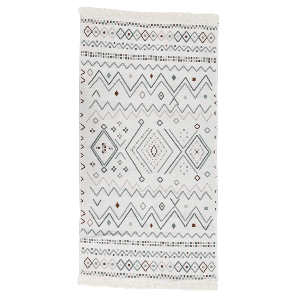 Napravljen od 100 % pamuka, ovaj podni tepih mekan je i ugodan za hodanje bosim nogama. Ne trebate se brinuti ako se zaprlja: ovaj unutarnji tepih može se prati u perilici rublja na 30 °C prema preporučenom ciklusu pranja "Osjetljivo". Ovaj je tepih dvostran, što znači da se može upotrebljavati s obje strane. Osim toga, može poslužiti i kao deka za drijemanje.