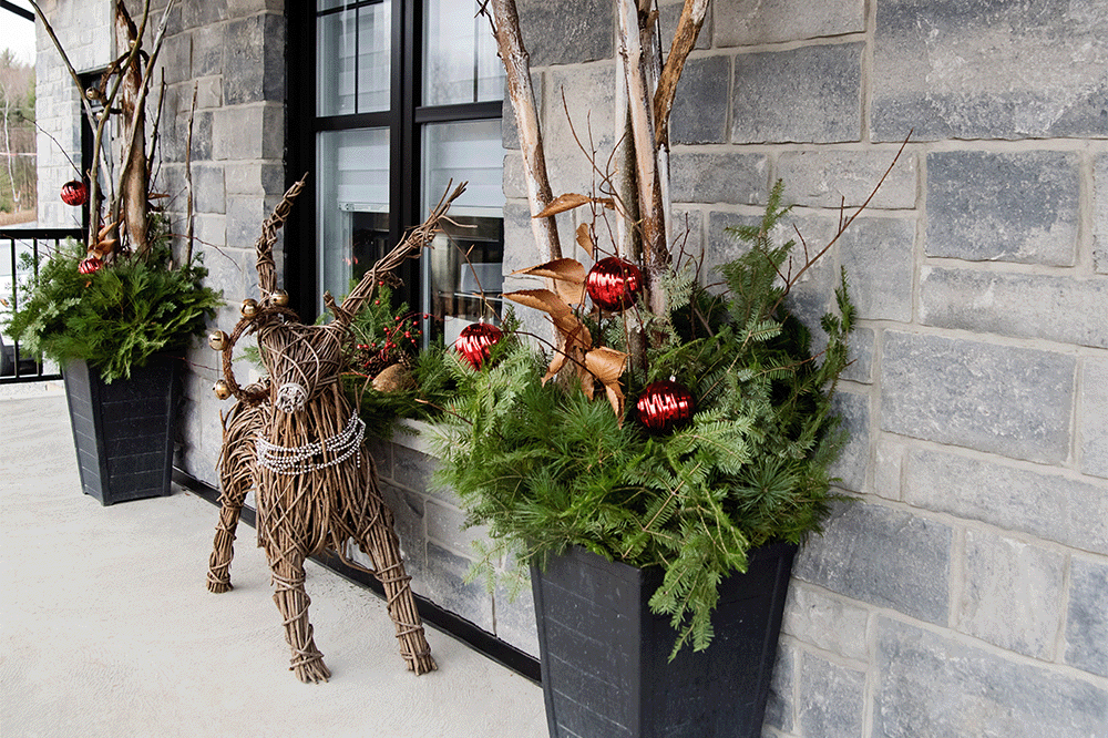 Imate trijem ili terasu, ali niste sigurni kako ih ukrasiti? Ljubitelji vrtlarstva bit će presretni zbog ovog sjajnog i jednostavnog rješenja: ukrasna božićna sadilica. Na primjer, sićušne božićne jele u posudama – ili bilo koja druga vrsta četinjača – jednostavno su prekrasne, uz to što su ekološki prihvatljive. Još jedna stvar koju možete učiniti jest napuniti vaze granama drveća i svečanim ukrasima.
