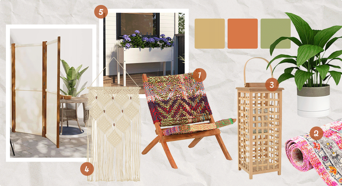 Za svoj boho chic balkon odaberite ručno izrađene detalje, zaobljene oblike, mekane dizajne s organskim uzorcima i puno biljaka.