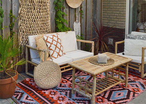 Unesite sklad u svoj dnevni boravak na otvorenom uz prirodne materijale. Od rustičnog drvenog namještaja do ukrasa od kamena, bambusa ili jute, ti materijali za dnevni boravak na otvorenom neophodni su.