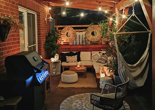 Uredite vanjski prostor za boravak koji ima ugođaj doma. Kamini, deke, svjetla i tepisi savršeni su za vrhunsku atmosferu boravka na otvorenom!