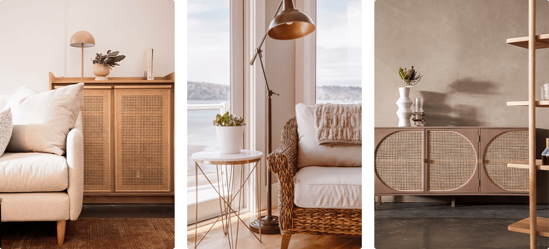Trend ratana dodaje dašak profinjenosti vašem domu, na mekan i lijep način. Zbog svoje palete boja, pruće stvara svježu, toplu i otvorenu atmosferu kamo god ga odlučite smjestiti. Gole nijanse ratana (prirodnog ili umjetnog) stvaraju dubinu svojom jednostavnošću u kombinaciji sa svježim bijelim, suptilnim nijansama sive i nježnim bež tonovima. Obavezno ga upotpunite daškom zelenila, za prirodno unutarnje ozračje koje vas poziva da usporite i opustite se.